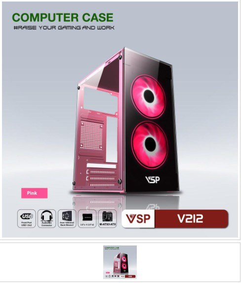 CASE VSP V212 PINK ( mATX ) VĂN PHÒNG , GAMING , CHÍNH HÃNG