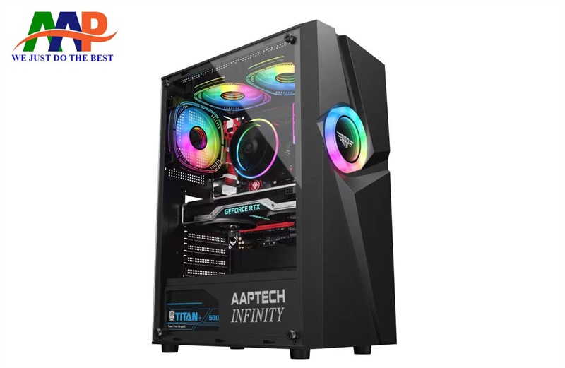 Case AAP INFINITY Pink/White/Black (338x192x447mm, Sẵn Đèn LED RGB + Hông Kính Cường Lực)