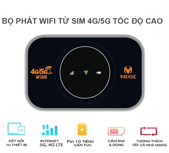 Bộ phát Wifi 4G/5G di động MIXIE MF3600 bảo hành 12 tháng